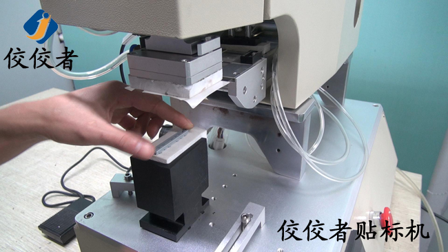 3)然后踩腳踏,此時貼標(biāo)過程已經(jīng)完成.看似只有一秒鐘的時間,在這個時間中,機(jī)器進(jìn)行了一系列的工作.