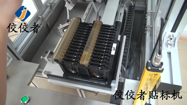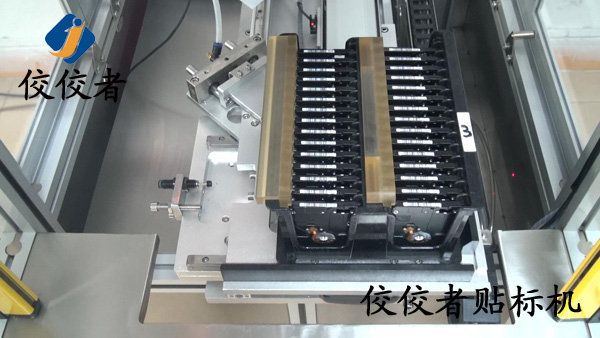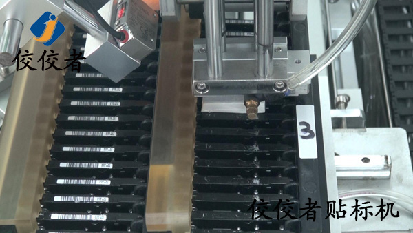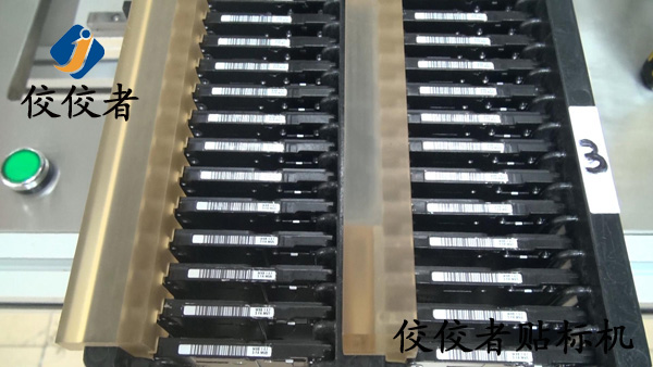 上圖展示的是硬盤貼標機已經將硬盤放入治具中并移動到治具臺準備貼標,下一步就是貼標了,如下圖: