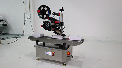 4.最后調上貼標頭,單獨放貼標產品,在輸送帶輸送時,是否晃動、抖動