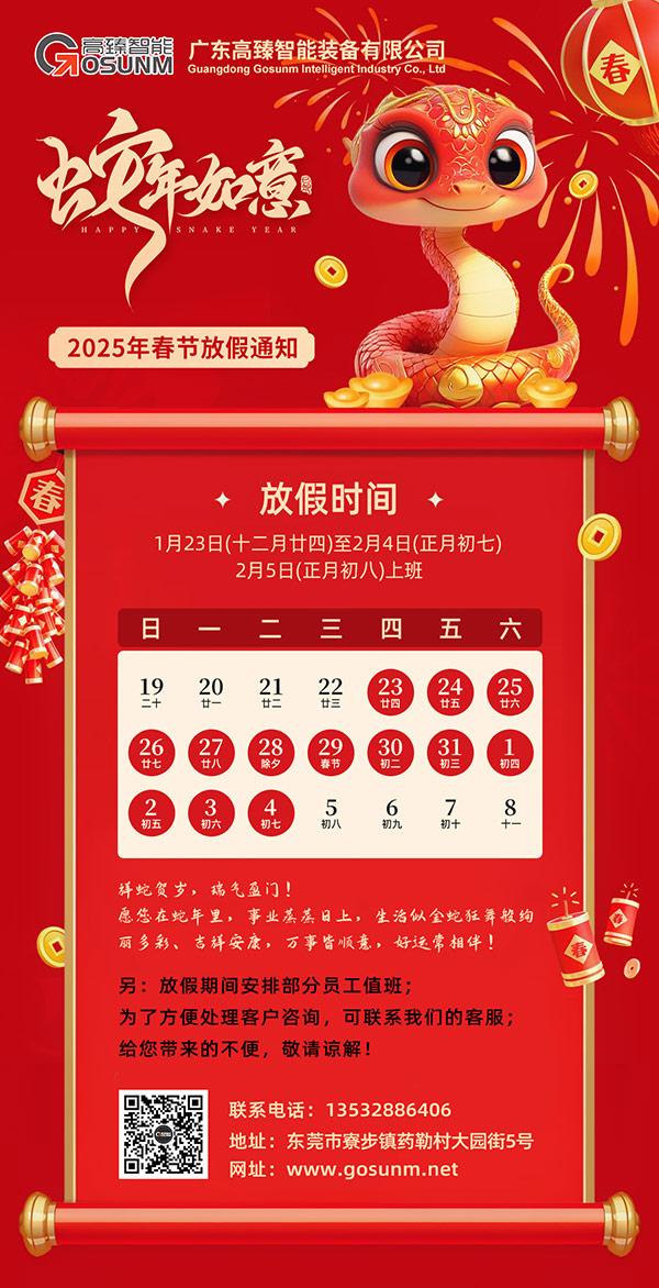 最后,廣東高臻智能裝備有限公司攜全體員工提前祝大家春節(jié)快樂,闔家幸福!