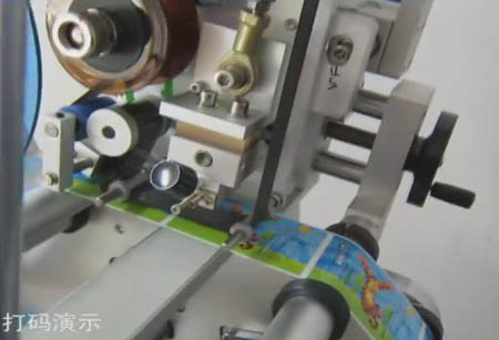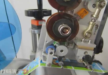 對產品一邊進行貼標,一邊進行打印文字。已經是一個很容易就能實現的功能了。實現這個即時打印功能的東東,叫打碼機。一般的標準貼標設備上都是可以進行選配這個打碼機的。也就是說,幾乎所有的標準設備都可以進行即時打印功能。我公司有一款典型的即時打印貼標設備:全自動臥式圓瓶貼標機。
