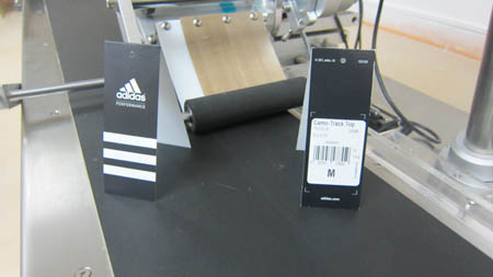 上圖是我公司貼標設備為浙江省臺州市的一家服裝公司進行試貼標的樣品圖片。