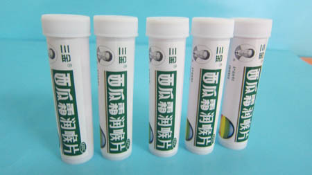 上圖都是我公司貼標機為三金藥業對三金西瓜霜潤喉片進行貼標的樣品圖片。可以發現的是,這個小圓瓶頭部的直徑比下面的直徑要大一點。貼這種類型的貼標機設備叫小圓瓶貼標機,自動臥式圓瓶貼標機。