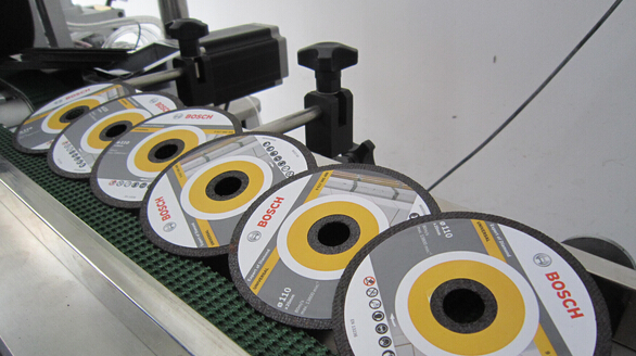上圖的這個產(chǎn)品是我公司貼標(biāo)機系列下專用貼標(biāo)機系列下的全自動砂輪片專用貼標(biāo)機對砂輪片進行貼標(biāo)的樣品圖片.這張圖片是在產(chǎn)品上面時行拍攝的.背景中的設(shè)備便是我公司的全自動砂輪片專用貼標(biāo)機了.