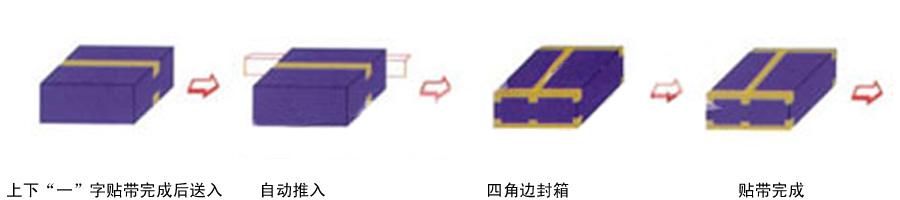 ◆ 上下“一”字貼帶完成后送入—自動推入?四角邊封箱?貼帶完成
